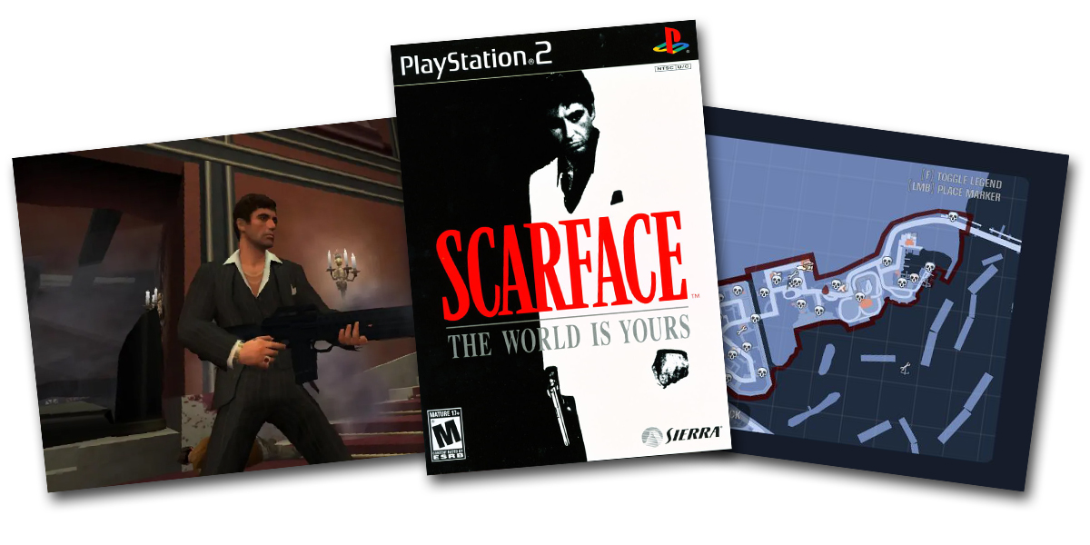 As I was considering my return to full-time game development, an opportunity presented itself. Radical Entertainment needed assistance with their upcoming game, "Scarface: The World Is Yours," and reached out to see if I would be available to help. I negotiated a work-from-home contract and began contributing to the project by working on maps for the game’s interface. While the work wasn't overly complex, it was another credit on a significant project and a foot back into the video game industry.