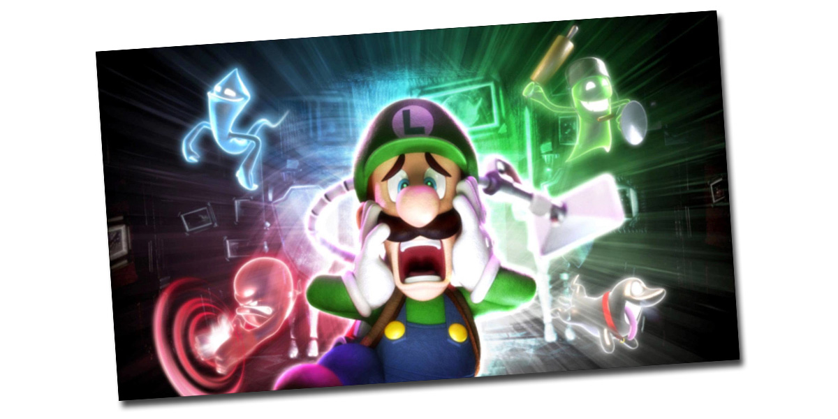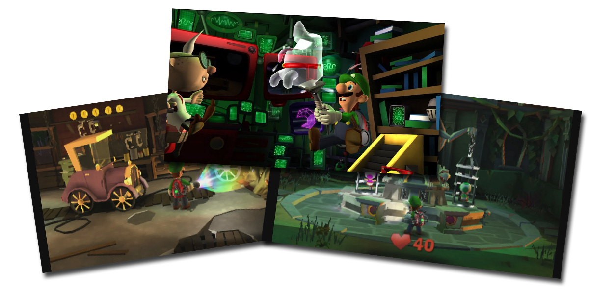 The gameplay follows Luigi as he explores five haunted mansions to recover pieces of the Dark Moon, shattered by King Boo, causing the ghosts in Evershade Valley to become hostile. Equipped with the Poltergust 5000, a ghost-sucking vacuum cleaner, and other gadgets like the Dark-Light Device, Luigi captures ghosts and uncovers hidden secrets.