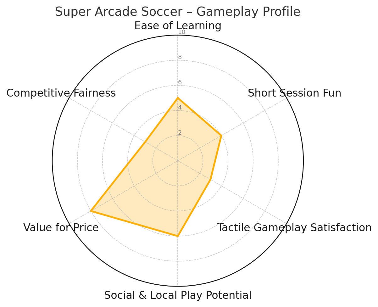 Summary: Super Arcade Soccer is best seen as a novelty. Its retro aesthetic and low price may appeal to some, but its mechanical shortcomings and lack of polish limit its lasting appeal. FlickKick, by contrast, aims for precision, polish, and competitive enjoyment—something Super Arcade Soccer struggles to deliver. with nostalgic visuals, but a weak contender in actual gameplay.
