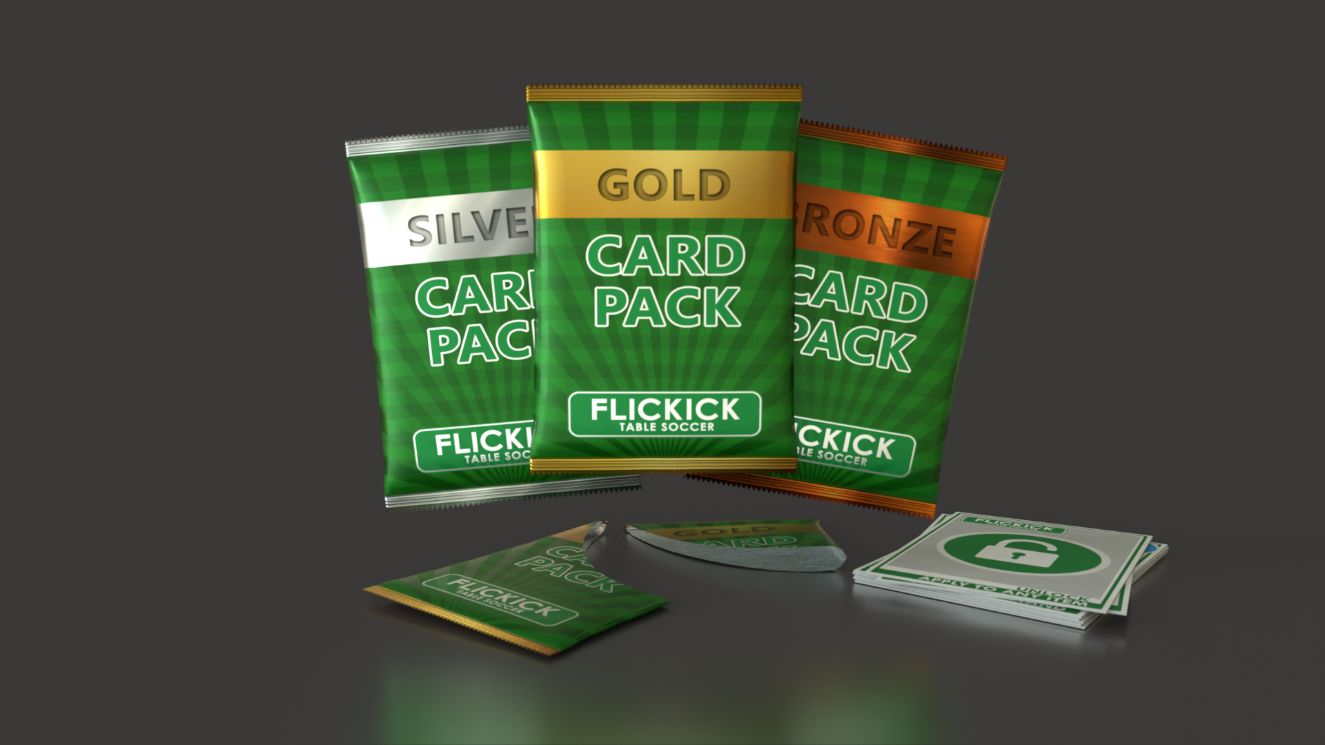 Card Pack Unlock System A core feature that ties FlicKick's cosmetic system together is the card pack unlock system. Rather than relying on traditional storefront purchases, players earn card packs by completing achievements and competing in FlicKick's Mini-Games (Single Player Mode). These packs contain random assortments of cosmetic items, ranging from player skins and model variants to room decorations, pitch designs, and stadium parts.