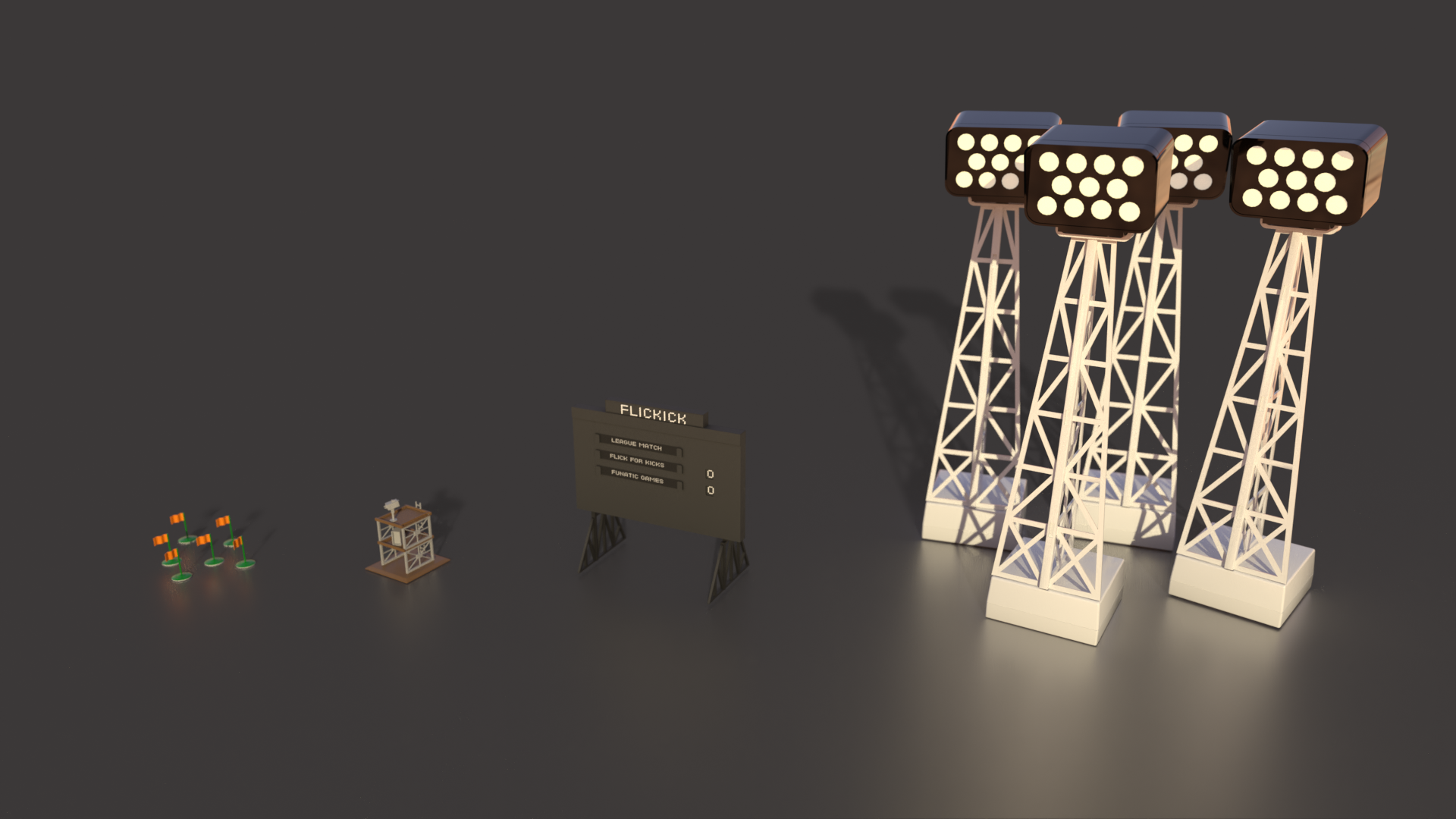 Accessories & Field Dressings From tiny corner flags and weathered sideline benches to themed balls and referees, FlicKick offers detailed dressings that let players craft their ideal pitch. Some accessories react dynamically to gameplay (like confetti bursts after a goal), adding charm without clutter. Others are seasonal, bringing holiday-themed decor or tournament-specific visual flair.