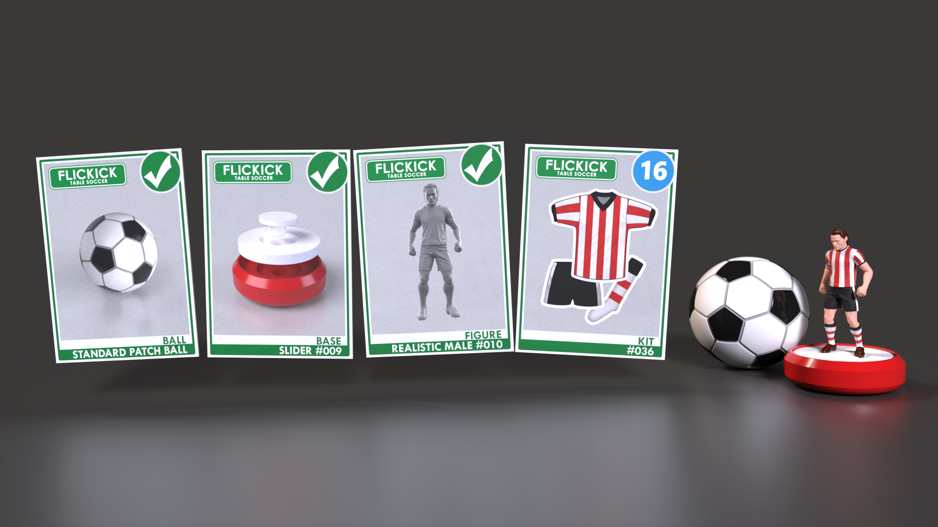 In addition to skins, FlicKick will support complete model swaps for player figures. This opens up creative possibilities for themed sets (e.g. cartoon, stylized, big-head, sci-fi) and officially licensed models from partnered clubs, brands, or even other games. Unique player poses will also be available, allowing for expressive stances that give each team a distinct look without affecting gameplay. These model variations maintain consistent hitboxes and gameplay behavior but allow for a more expressive and collectable roster of teams. Whether you're fielding a team of toy soldiers or retro action figures, your flicks will play the same, but your table will never look boring.